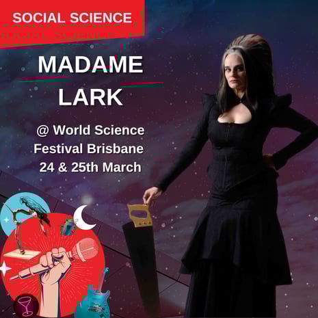 Madame Lark is helping Social Science transform the Queensland Museum into a hub of science entertainment! Madame Lark will be there on Friday 24th + Saturday 25th March for her musical saw and her unique interpretations of Australian bird-calls. With something to discover in every corner of the museum, Social Science will immerse you in experimental fun. Book now and get 20% off with the promocode WSFBGUEST23. @WorldScienceFestivalBrisbane, #WSFB2023