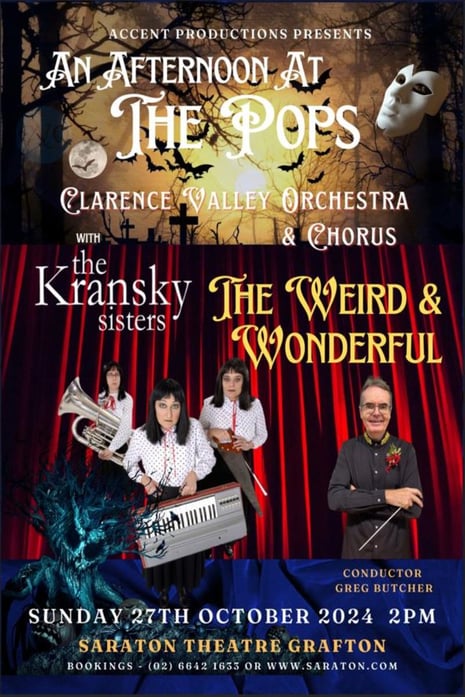The Clarence Valley Orchestra and Chorus are back again with ‘An Afternoon at The Pops’ for their 10th Anniversary at the Saraton Theatre with another fantastic program from Artistic Director & Conductor Greg Butcher on Sunday afternoon 27th October. This year, their 10th anniversary concert special guest artists are The Kransky Sisters from Esk, who are driving their Morris down to Grafton to join the Clarence Valley Orchestra & Chorus for the afternoon concert.