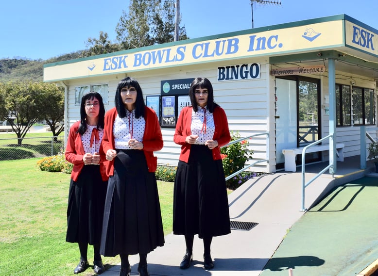 The Kransky Sisters outside the Esk Bowls Club. The sisters from L to R - Dawn, Mourne & Eve Kransky.